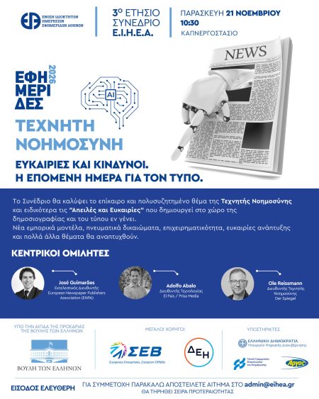 Εφημερίδες 2026: Τεχνητή Νοημοσύνη – Ευκαιρίες και κίνδυνοι – Η επόμενη μέρα για τον Τύπο – Τυπολογίες