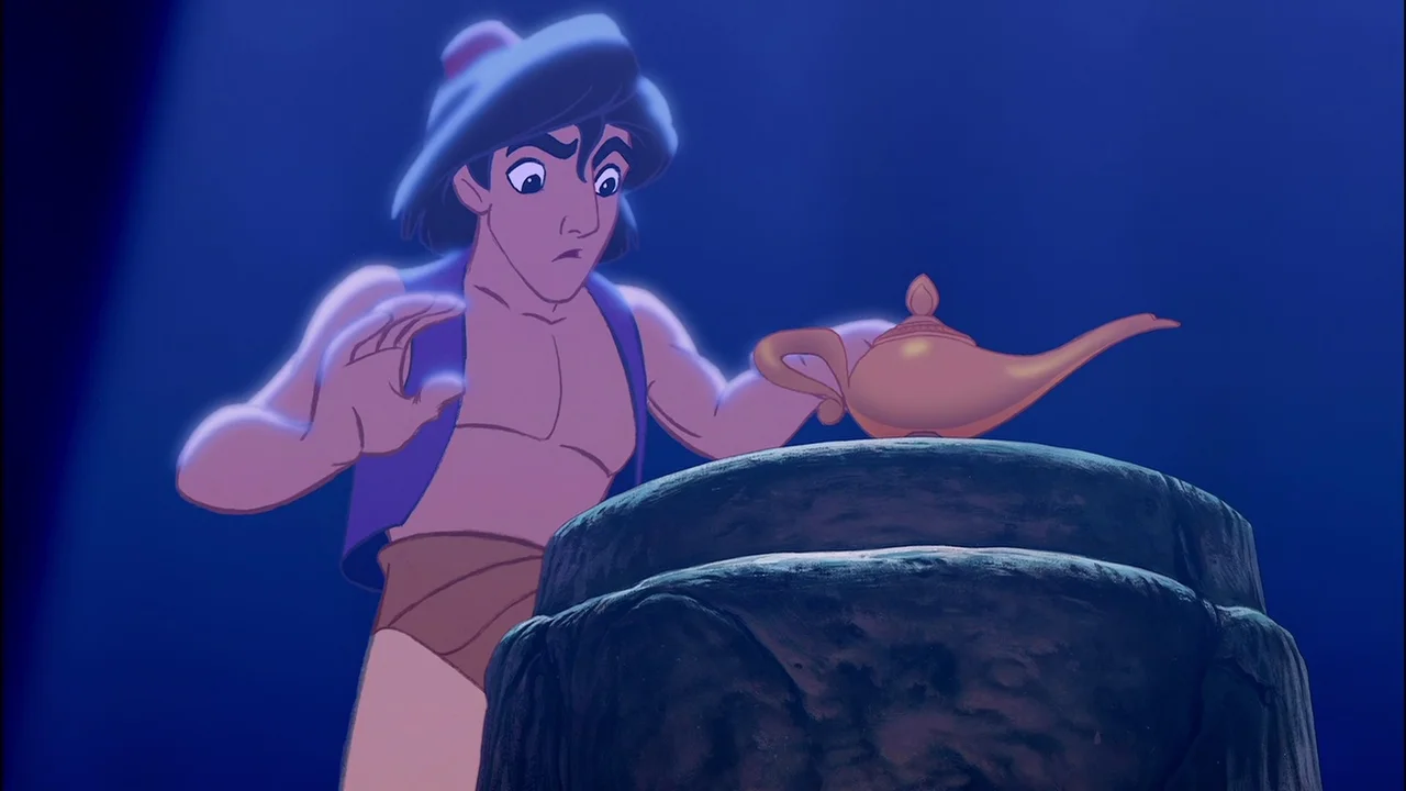 Η ιστορία ενός φτωχού ‘αλήτη των δρόμων’ που μεταμορφώνεται σε πρίγκιπα βασίζεται σε ένα μεσανατολικό λαϊκό παραμύθι από το “One Thousand and One Nights” και προτάθηκε αρχικά το 1988 από τον Ashman, ο οποίος δυστυχώς δεν έζησε για να δει το τελικό προϊόν. Το εγχείρημα είχε μια απροσδόκητα ταραχώδη ιστορία: ο επικεφαλής του στούντιο, Jeffrey Katzenberg, φέρεται να μην ικανοποιήθηκε από το πρώτο προσχέδιο του σεναρίου και τον Απρίλιο του 1991 ζήτησε από τους σκηνοθέτες να ξαναγράψουν την ιστορία από την αρχή, χωρίς να μετακινήσουν την προγραμματισμένη ημερομηνία κυκλοφορίας. Η πίεση του χρόνου προφανώς δεν επηρέασε την ποιότητα – το “Aladdin” παραμένει μία από τις πιο αγαπημένες ταινίες της αναγεννησιακής εποχής της Disney, γεννώντας δύο συνέχειες που κυκλοφόρησαν απευθείας σε βίντεο, μια σειρά κινουμένων σχεδίων, μια μεταφορά στο Broadway και το μετέπειτα live-action remake από τον Guy Ritchie.