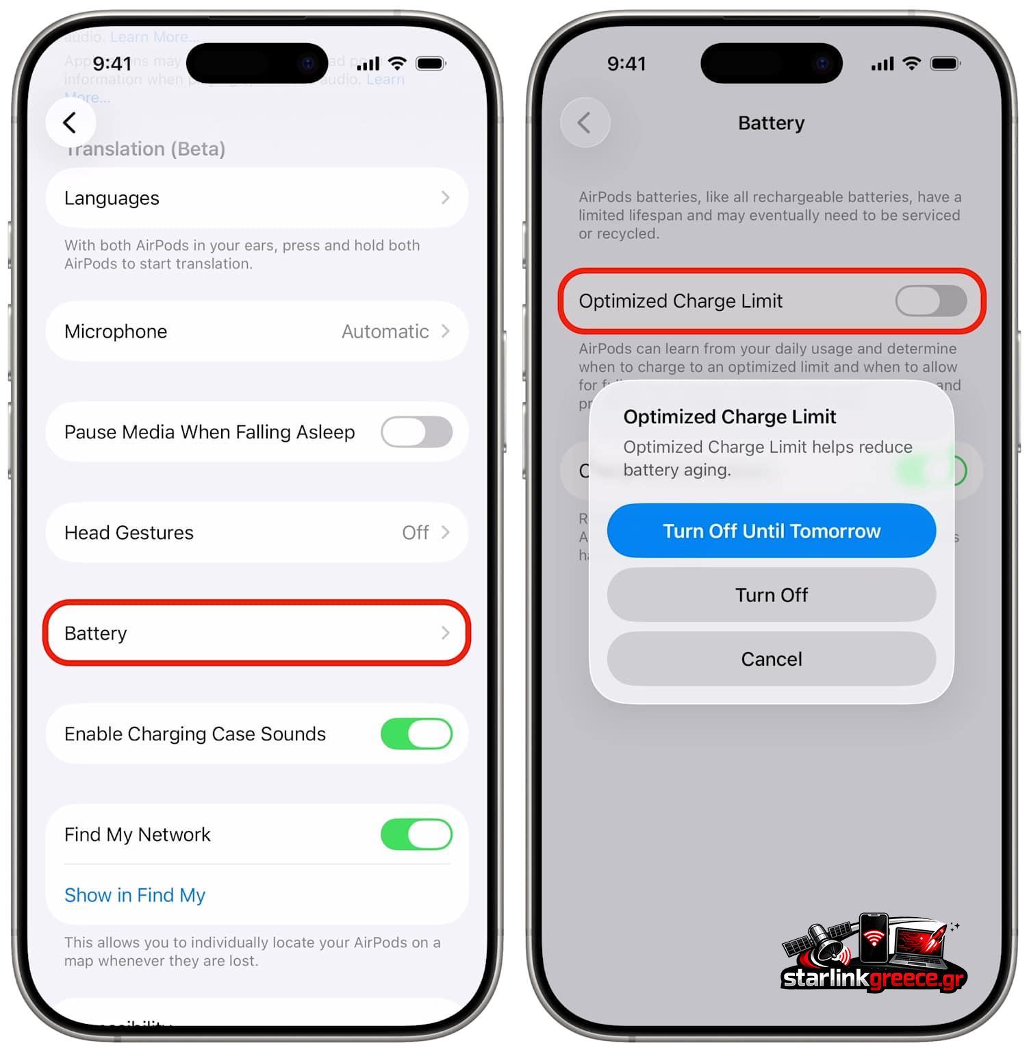 Στο συνδεδεμένο iPhone ή iPad, πήγαινε στις Ρυθμίσεις → επίλεξε τα AirPods σου → Battery → και ενεργοποίησε το toggle Optimized Battery Charging.