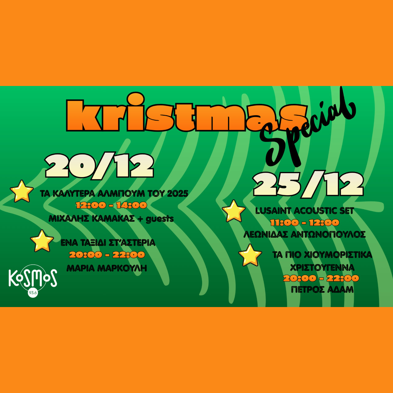 Την Κυριακή 21 Δεκεμβρίου 2025, από τις 17:00, οι παραγωγοί του Kosmos 93,6 θα στήσουν ένα πανηγυρικό KOSMOS Kristmas Street Party 2025 στην γωνία Κολοκοτρώνη και Νικίου. Η γιορτή θα φέρει κοντά τους ακροατές, συνδυάζοντας μουσική και χριστουγεννιάτικες εκπλήξεις.