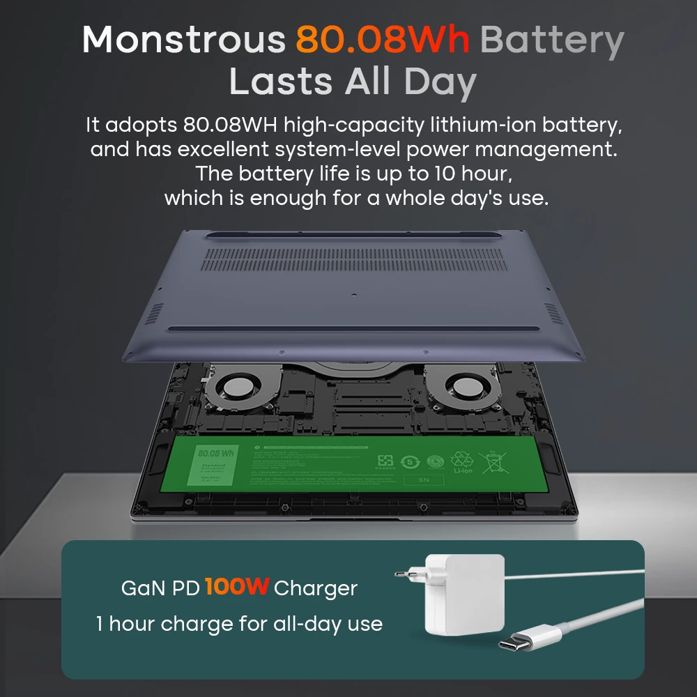 Με μια ευρεία μπαταρία 80.1Wh, το Ninkear A16 Pro προσφέρει έως και 10 ώρες χρήσης σύμφωνα με την εταιρεία, και έρχεται με Windows 11 προεγκατεστημένο.