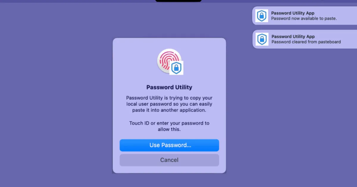 Ενθαρρύνει επίσης καλύτερες πρακτικές ασφάλειας, επειδή μπορείτε να χρησιμοποιήσετε το Touch ID για να «επικολλήσετε» τον τοπικό σας κωδικό πρόσβασης και οι ομάδες IT μπορούν να επιβάλουν σύνθετους κωδικούς πρόσβασης 20 χαρακτήρων που οι χρήστες δεν χρειάζεται να πληκτρολογήσουν ποτέ. Πραγματοποιούν έλεγχο ταυτότητας με το δακτυλικό τους αποτύπωμα και το βοηθητικό πρόγραμμα χειρίζεται τα υπόλοιπα.
