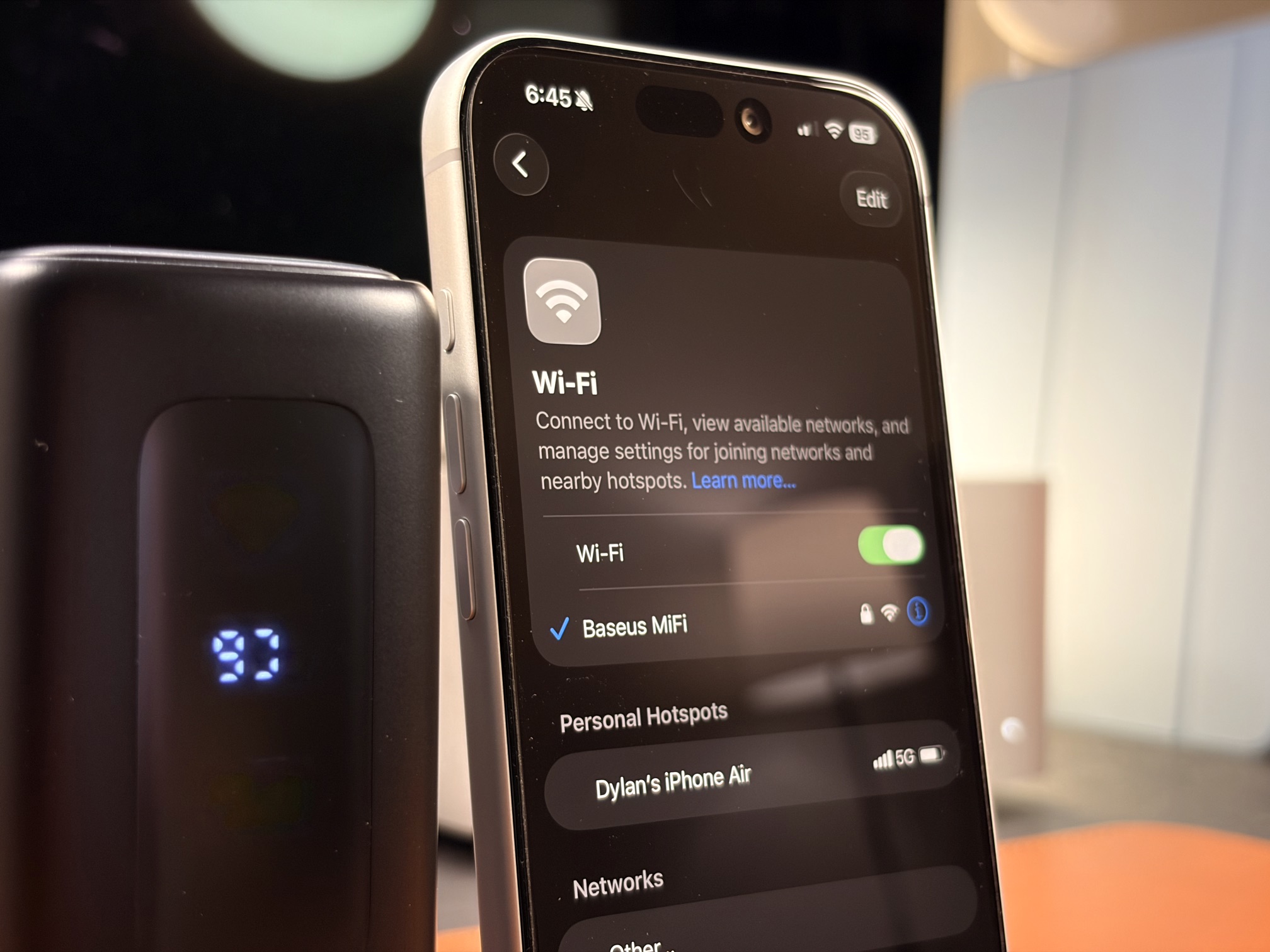 Ενώ οι δυνατότητες φόρτισης είναι εξαιρετικές, το κύριο χαρακτηριστικό του GX11 είναι το ενσωματωμένο hotspot του. Μπορείτε να συνδέσετε έως και 10 συσκευές στο power bank και να αποκτήσετε σύνδεση 4G hotspot. Η Baseus διαφημίζει μέγιστη ταχύτητα λήψης 150 Mbps και ταχύτητα μεταφόρτωσης 50 Mbps. Στις δοκιμές μου, μπόρεσα να ανεβάζω 27 και να μειώνω 24, κάτι που είναι καλύτερο από αυτό που παίρνω στην κινητή σύνδεση του τηλεφώνου μου (ζω σε μια περιοχή με κακή κάλυψη). Διαφημίζουν επίσης έως και 114 ώρες διάρκεια ζωής της μπαταρίας όταν χρησιμοποιείτε απλώς τη λειτουργία hotspot, ώστε να μπορείτε να παραμένετε συνδεδεμένοι για πολλές μέρες.