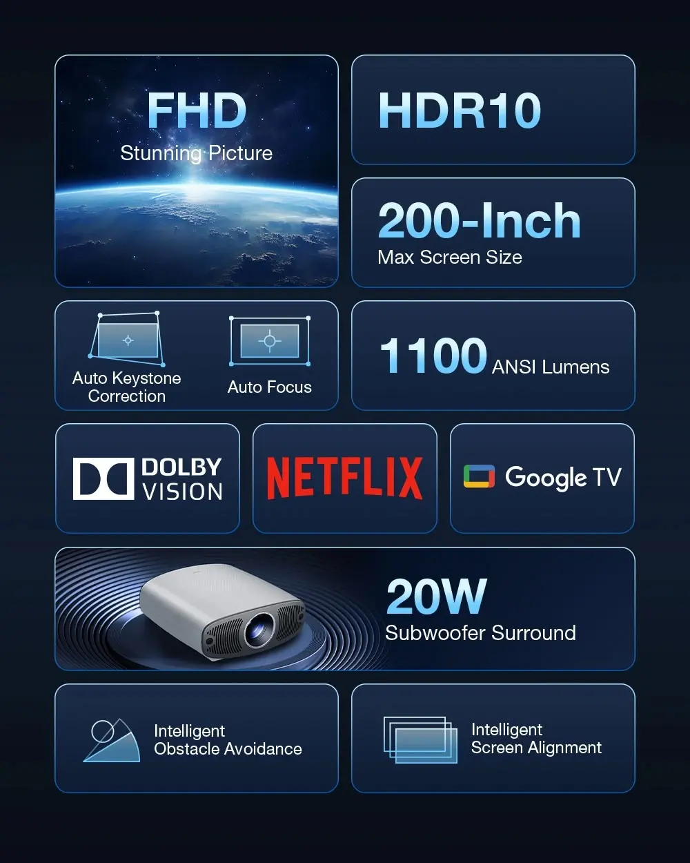 Ο BlitzWolf BW-V11 έχει Dolby Visionμια τεχνολογία που βελτιώνει τη φωτεινότητα, την αντίθεση και την απόδοση χρωμάτωναπόδοση εικόνων απίστευτη λεπτομέρεια.