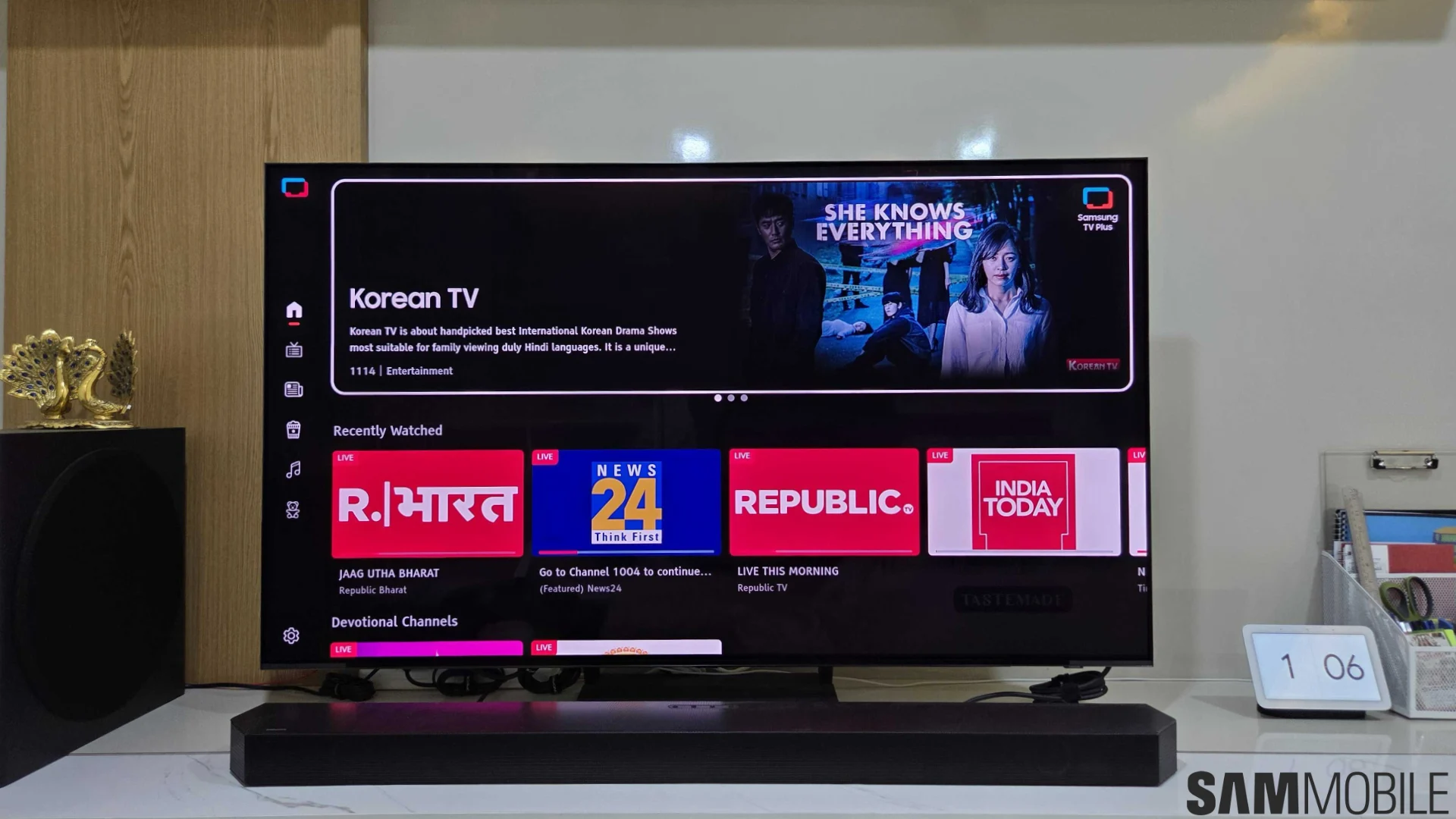 Το Samsung TV Plus είναι μια εντελώς δωρεάν και υποστηρίζεται από διαφημίσεις υπηρεσία ροής βίντεο που μεταδίδει εκατοντάδες κανάλια και περιεχόμενο βίντεο κατ’ απαίτηση. Διατίθεται δωρεάν σε όλες τις τηλεοράσεις Samsung, τηλέφωνα, tablet, Smart Monitor, ψυγεία της σειράς Family Hub και επιλεγμένα ψυγεία της σειράς AI Home.