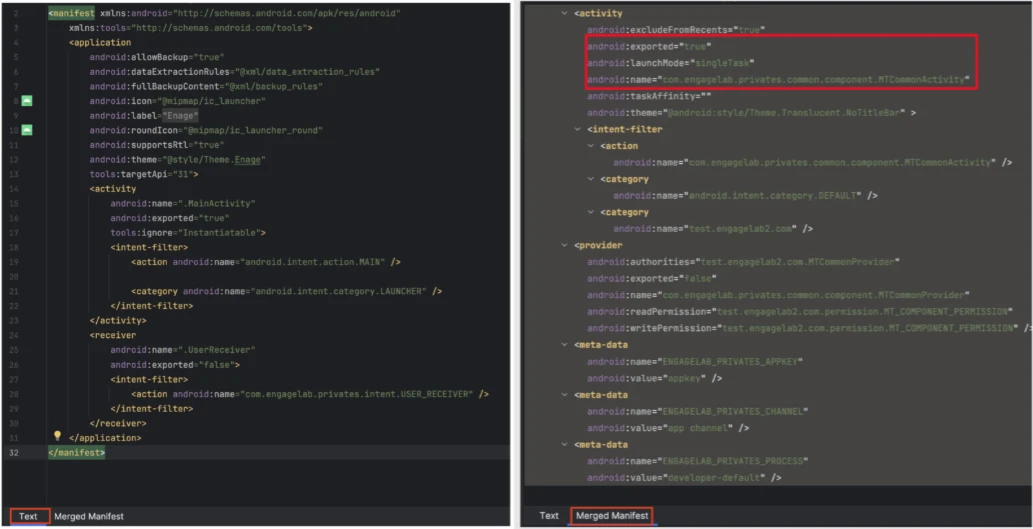 Το EngageSDK είναι ένα κιτ ανάπτυξης λογισμικού (SDK) που έχει σχεδιαστεί από την εταιρεία EngageLab. Στοχεύει να διευκολύνει τους προγραμματιστές στην προσθήκη χαρακτηριστικών όπως ειδοποιήσεις push και λειτουργίες ανταλλαγής μηνυμάτων σε πραγματικό χρόνο στις Android εφαρμογές τους. Επειδή το SDK αυτό χρησιμοποιείται ευρέως, ένα ελάττωμα μπορεί να οδηγήσει σε ευρεία έκθεση.