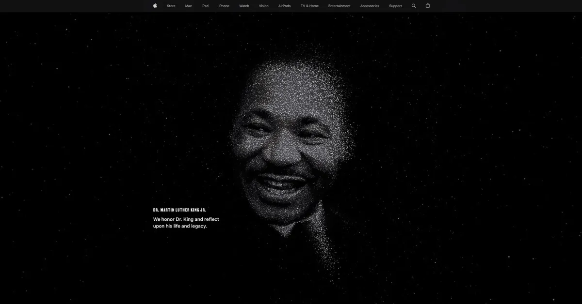 Σε μια ετήσια παράδοση, η Apple γιορτάζει την Ημέρα του Μάρτιν Λούθερ Κινγκ Τζούνιορ στην αρχική της σελίδα, με αποσπάσματα από τον πρωταθλητή των πολιτικών δικαιωμάτων.