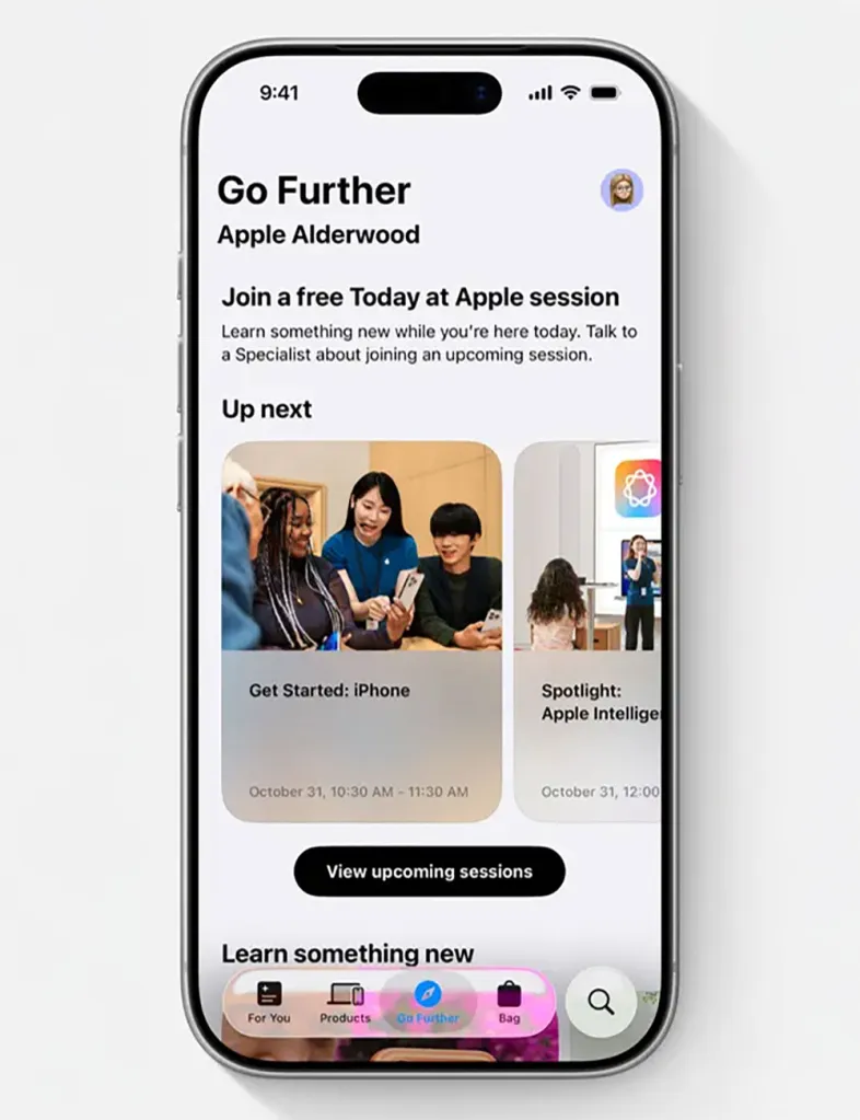 Με την ενημέρωση που κυκλοφόρησε νωρίτερα σήμερα, η Apple ενημέρωσε το εικονίδιο της εφαρμογής Apple Store με την εμφάνιση Liquid Glass και έφερε επίσης την κάτω γραμμή Liquid Glass με τις καρτέλες For You, Products, Go Further και Bag, καθώς και το κουμπί Αναζήτηση.