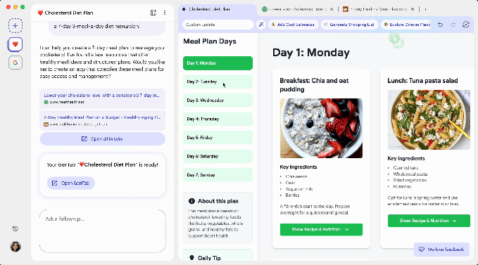 Ή, σε ένα λιγότερο ακαδημαϊκό σενάριο, θα μπορούσατε να χρησιμοποιήσετε το GenTabs για να σας βοηθήσει να δημιουργήσετε ένα πρόγραμμα γευμάτων από μια σειρά διαδικτυακών συνταγών ή να σας βοηθήσει να σχεδιάσετε ένα ταξίδι όταν κάνετε έρευνα για ταξίδια.