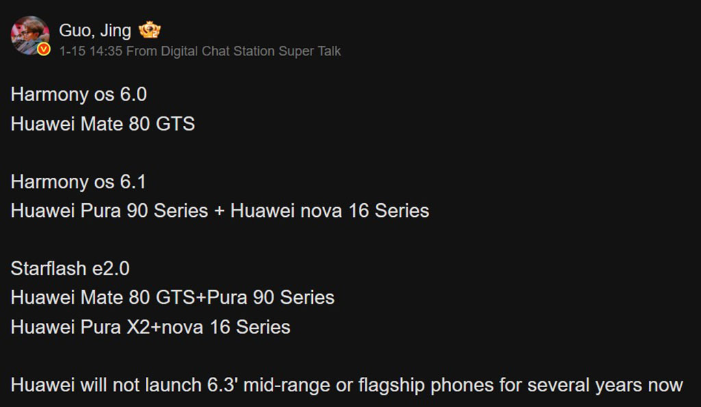 Μέσα σε αυτές τις λεπτομέρειες, ο tipster ανέφερε ότι η Huawei δεν θα κυκλοφορήσει κανένα τηλέφωνο μεσαίας κατηγορίας ή ναυαρχίδα 6,3 ιντσών για αρκετά χρόνια τώρα. Δεν έχει στόχο να χτυπήσει την αγορά των μικρομεσαίων συσκευών με τις δημιουργίες της, όπως σχεδιάζει η Honor με το Magic 8 Pro Air.