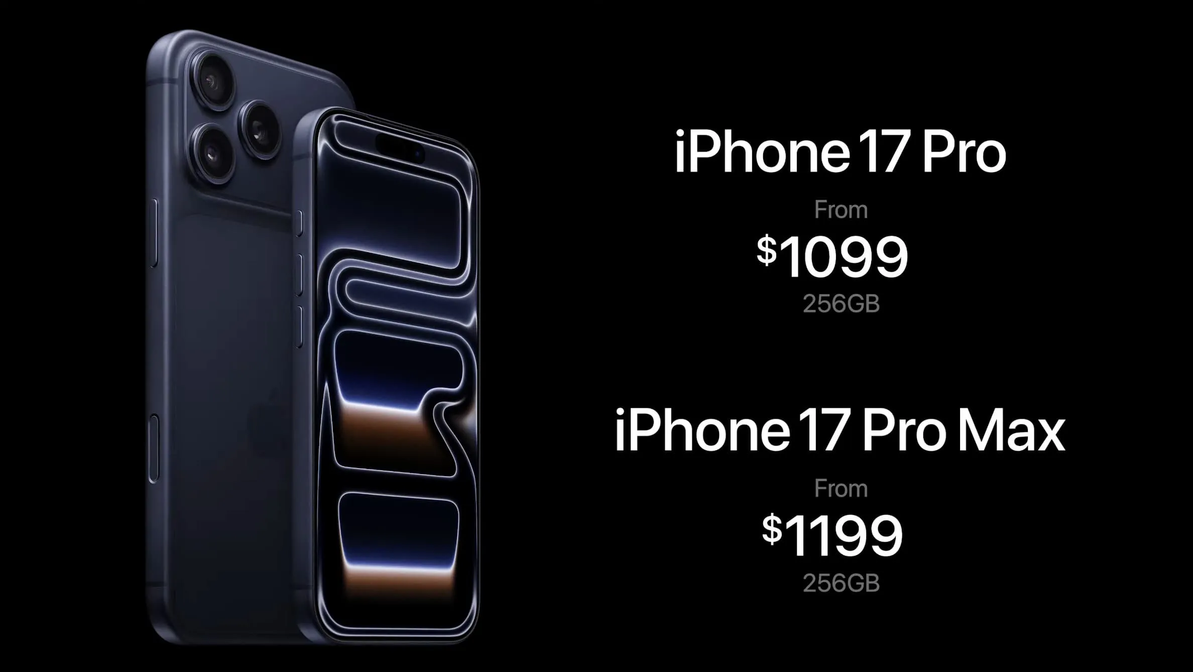 - Το iPhone 17 Pro ξεκινά από 1.099 $: αυτή είναι τεχνικά μια αύξηση 100 $ σε σχέση με το iPhone 16 Pro, αλλά με την υψηλότερη αρχική αποθήκευση, είναι στην πραγματικότητα το ίδιο κόστος με ένα 256 GB 16 Pro