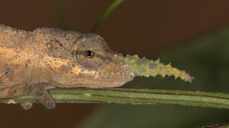 Πάνω από το 40 τοις εκατό από τα 236 γνωστά είδη χαμαιλέοντα σε όλο τον κόσμο ζουν στο νησί της Μαδαγασκάρης που βρίσκεται στα ανοιχτά των ακτών της Ανατολικής Αφρικής. Τα ερπετά είναι συχνά αναγνωρίσιμα για διάφορους λόγους, συμπεριλαμβανομένης της βαλλιστικής τους γλώσσας που χρησιμοποιούν για να σπαράζουν το θήραμα, τις ικανότητές τους να αλλάζουν χρώμα και τα ανεξάρτητα κινητά μάτια τους που τους δίνουν στερεοσκοπική όραση. Αλλά ο αρσενικός χαμαιλέοντας Πινόκιο έχει συγκεκριμένα ένα ακόμη εντυπωσιακό χαρακτηριστικό: μια ανώμαλη και πολύ μακριά μύτη.