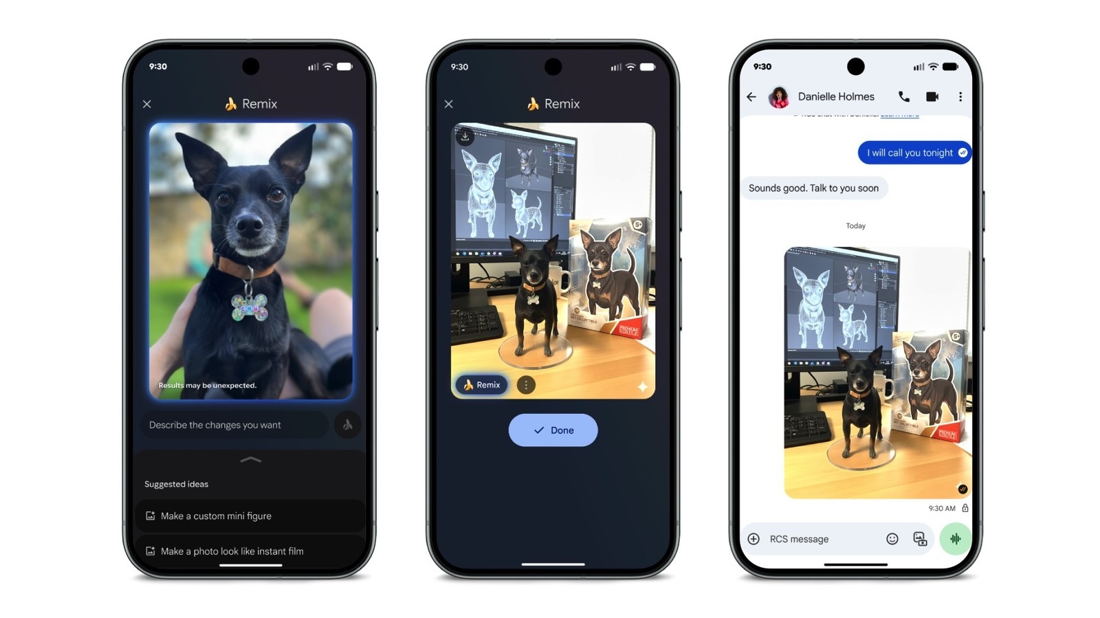 Μία από τις ξεχωριστές προσθήκες είναι το Remix in Το Google Messages, μια δημιουργική νέα λειτουργία που υποστηρίζεται από το μοντέλο Gemini Nano Banana της Google. Σας επιτρέπει να επαναλαμβάνετε φωτογραφίες μέσα σε μια συνομιλία. Εσείς και οι φίλοι σας μπορείτε να περάσετε την ίδια εικόνα εμπρός και πίσω, να την τροποποιήσετε και να την ανακατέψετε χωρίς να φύγετε ποτέ από τη συνομιλία.