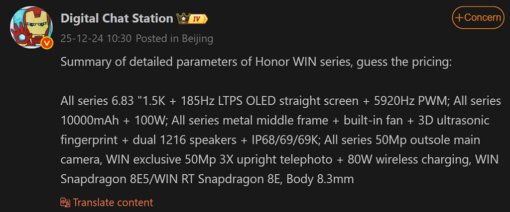 Το DigitalChatStation αποκάλυψε όλες τις βασικές προδιαγραφές των τηλεφώνων Honor WIN πριν από την επίσημη αποκάλυψή τους. Από την οθόνη μέχρι την μπαταρία και τις νέες πληροφορίες τσιπ, ο tipster έχει αναφέρει κάθε μέρος των νέων συσκευών gaming με πλήρη λεπτομέρεια.