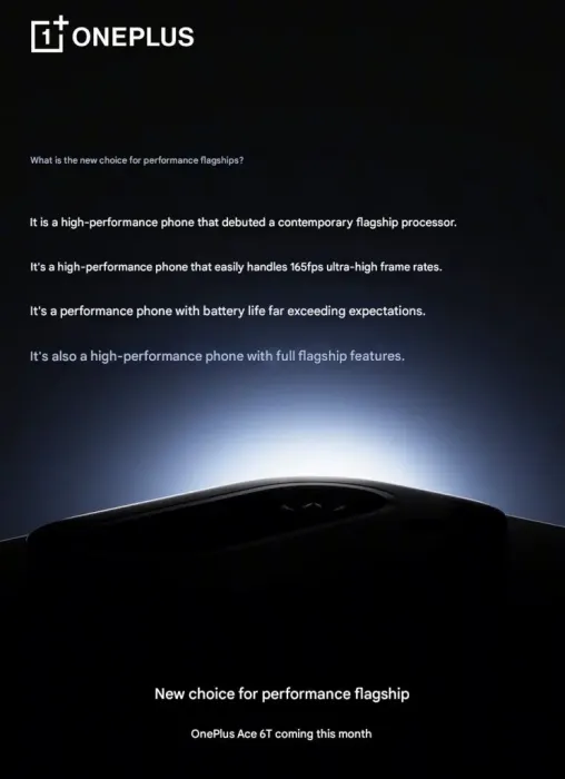 Μετά το κυκλοφορία του Άσσου 6 τον περασμένο μήνα, το OnePlus επιβεβαίωσε την κυκλοφορία του OnePlus Ace 6T στην Κίνα αργότερα τον Νοέμβριο. Θα είναι το πρώτο smartphone που θα τροφοδοτείται από το πιο πρόσφατο Snapdragon 8 Gen 5 SoC. Το teaser δείχνει ένα μεταλλικό πλαίσιο για το τηλέφωνο.