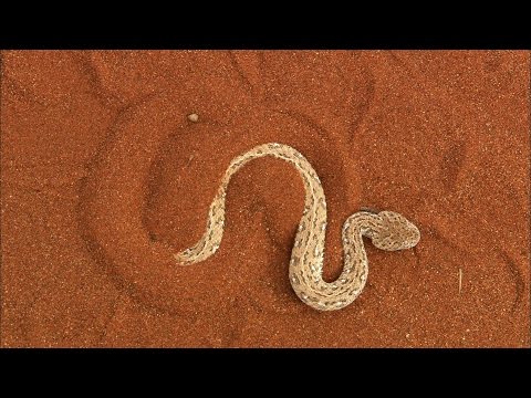 Ο αθροιστής του Peringey (Bitis peringueyi) μπορεί να ταξιδέψει έως και 18 μίλια την ώρα ενώ κινείται προς τα πλάγια με ένα στυλ κίνησης που είναι γνωστό ως πλάγια περιέλιξη. Βίντεο: Τρομακτικό: The Venomous Sidewinder Snake Slithers στα 18 MPH, Smithsonian Channel