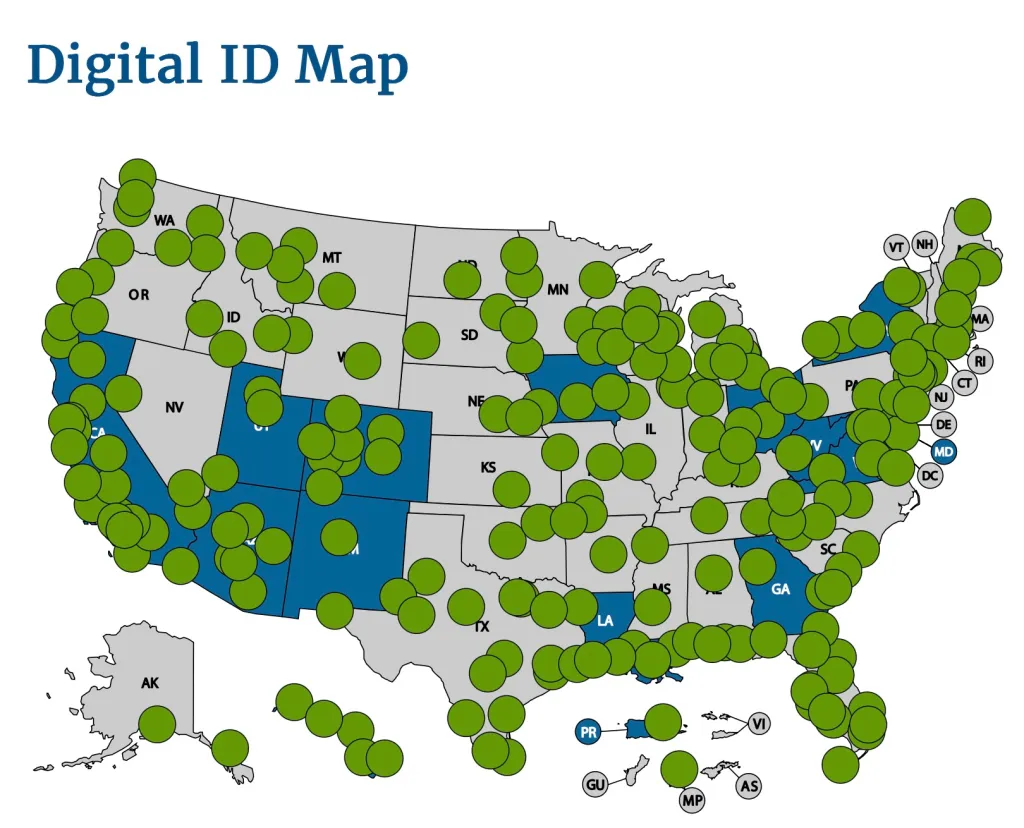Η TSA λέει ότι επί του παρόντος γίνονται δεκτές ψηφιακές ταυτότητες σε «περισσότερα από 250 σημεία ελέγχου TSA» στις Ηνωμένες Πολιτείες. Η TSA συνήθιζε να διατηρεί έναν ενημερωμένο χάρτη όλων των αεροδρομίων με υποστήριξη για ψηφιακά αναγνωριστικά στο Apple Wallet, αλλά δυστυχώς, αυτός ο χάρτης αφαιρέθηκε από τον ιστότοπο της TSA κάποια στιγμή φέτος. Εδώ είναι ένα αρχειοθετημένη έκδοση του χάρτη. Μπορείτε να δείτε ότι επιλεγμένα αεροδρόμια και στις σχεδόν 50 πολιτείες προσφέρουν υποστήριξη για ψηφιακά αναγνωριστικά.