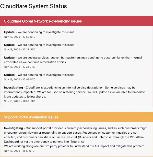 Επιδεινώνοντας την ειρωνεία, η σελίδα κατάστασης του Cloudflare έγινε απρόσιτη κατά τη διάρκεια της αιχμής, αποτρέποντας ενημερώσεις σε πραγματικό χρόνο για τους επηρεαζόμενους χρήστες.​
