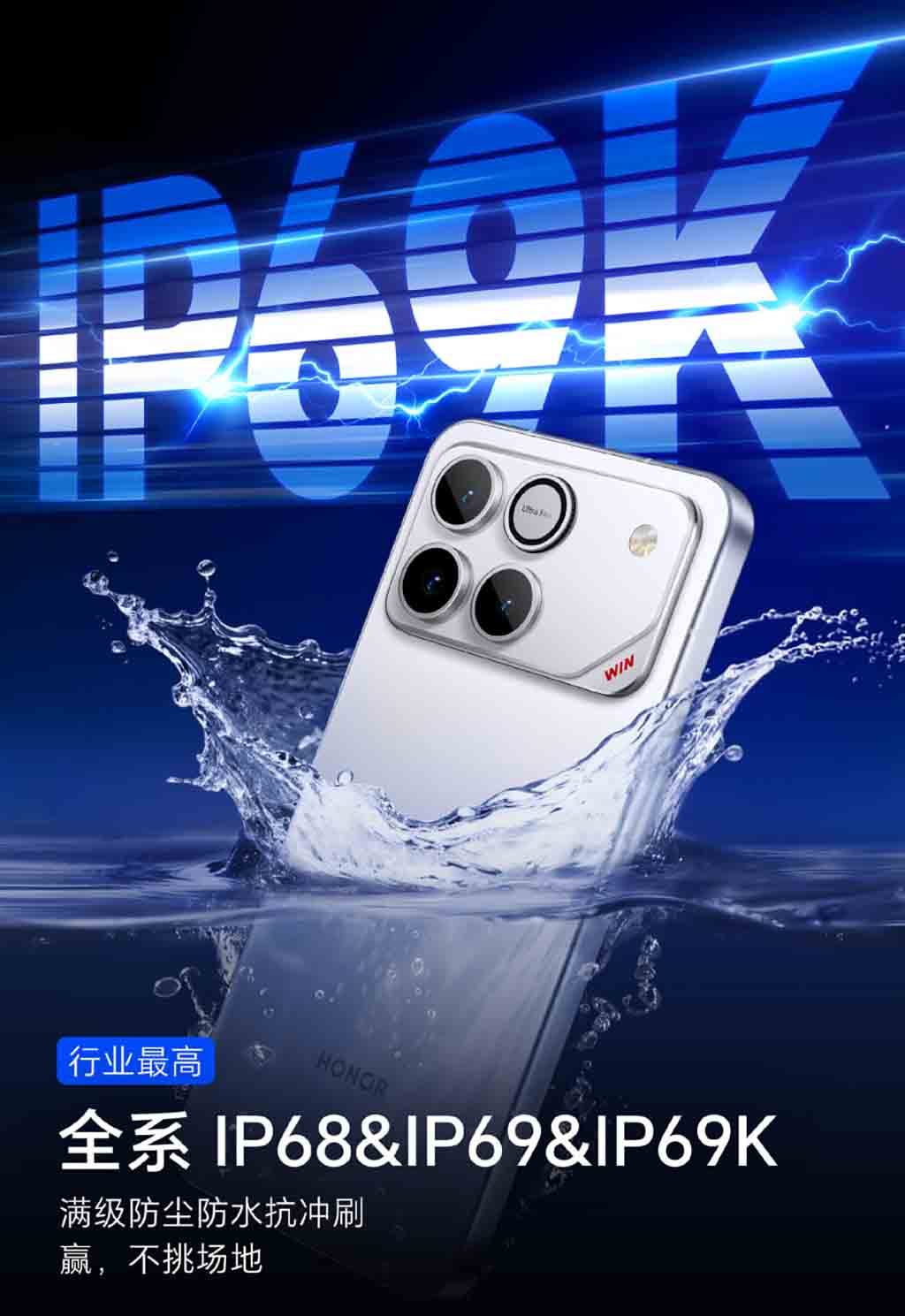 Το Honor WIN πρόκειται να ξεχωρίσει στη ναυαρχίδα του gaming, καθώς διαθέτει ένα μείγμα ισχύος με αντίσταση IP68 + IP69 + IP69K. Η νέα σειρά smartphone υπόσχεται στιβαρή ανθεκτικότητα όσον αφορά τους εξωτερικούς κινδύνους όπως το νερό, η σκόνη και η διάβρωση.