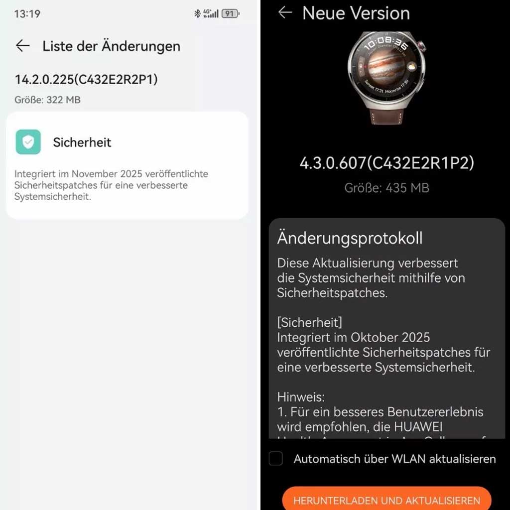 Από την άλλη πλευρά, το Watch 4 Pro λαμβάνει τη νέα ενημέρωση με την έκδοση έκδοσης HarmonyOS 4.3.0.607. Αλλά αντί για την ενημερωμένη έκδοση κώδικα ασφαλείας αυτού του μήνα, το wearable φέρει τις βελτιώσεις του Οκτωβρίου 2025. Το ημερολόγιο αλλαγών του λέει: