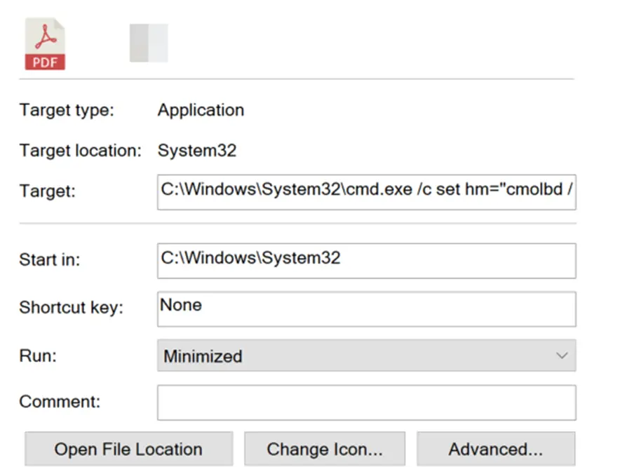 Ο διακομιστής WebDAV εμφανίζει κάτι που μοιάζει με αρχείο PDF, αλλά στην πραγματικότητα είναι μια κακόβουλη συντόμευση. Όταν ανοίξει, αυτή η συντόμευση εκτελεί κρυφές εντολές που πραγματοποιούν λήψη ενός σεναρίου δέσμης από το Cloudflare Workers χρησιμοποιώντας την ακόλουθη εντολή:-