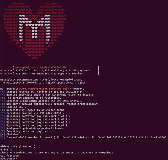 Η νέα μονάδα, που προσδιορίζεται ως exploit/linux/http/fortinet_fortiweb_rce, αυτοματοποιεί μια εξελιγμένη αλυσίδα επίθεσης που παρακάμπτει τους μηχανισμούς ελέγχου ταυτότητας πριν από την εκτέλεση αυθαίρετων εντολών του λειτουργικού συστήματος.