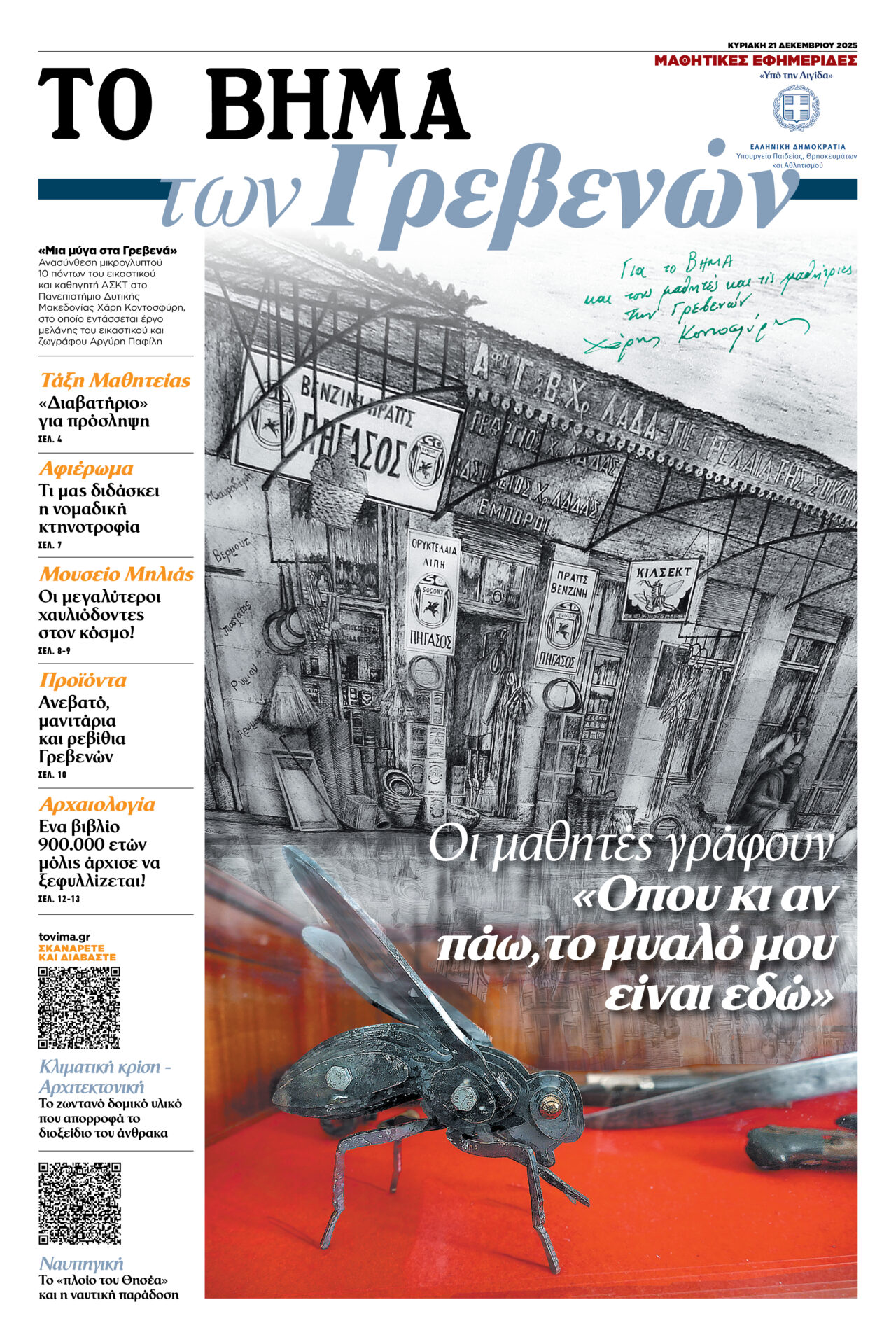 Με το ΒΗΜΑ κυκλοφορεί, αυτή την Κυριακή 21 Δεκεμβρίου 2025 η μαθητική εφημερίδα «ΤΟ ΒΗΜΑ των Γρεβενών».